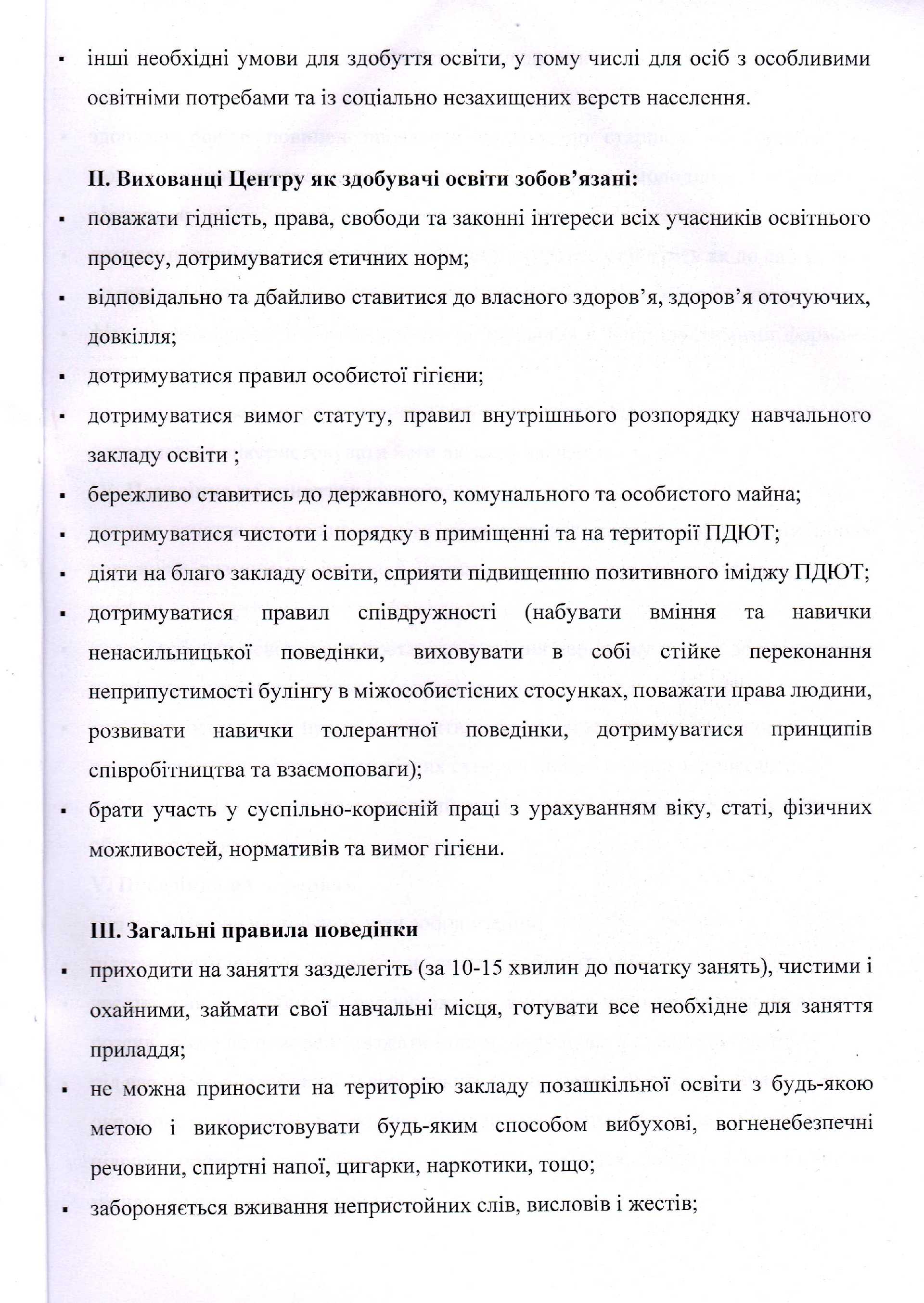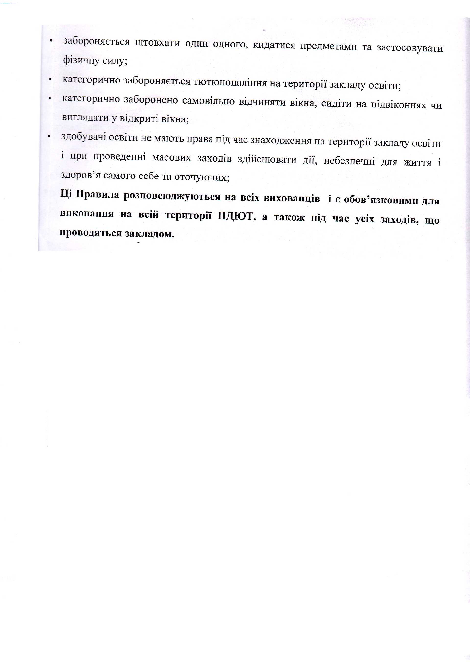 Правила поведінки у ПДЮТ
