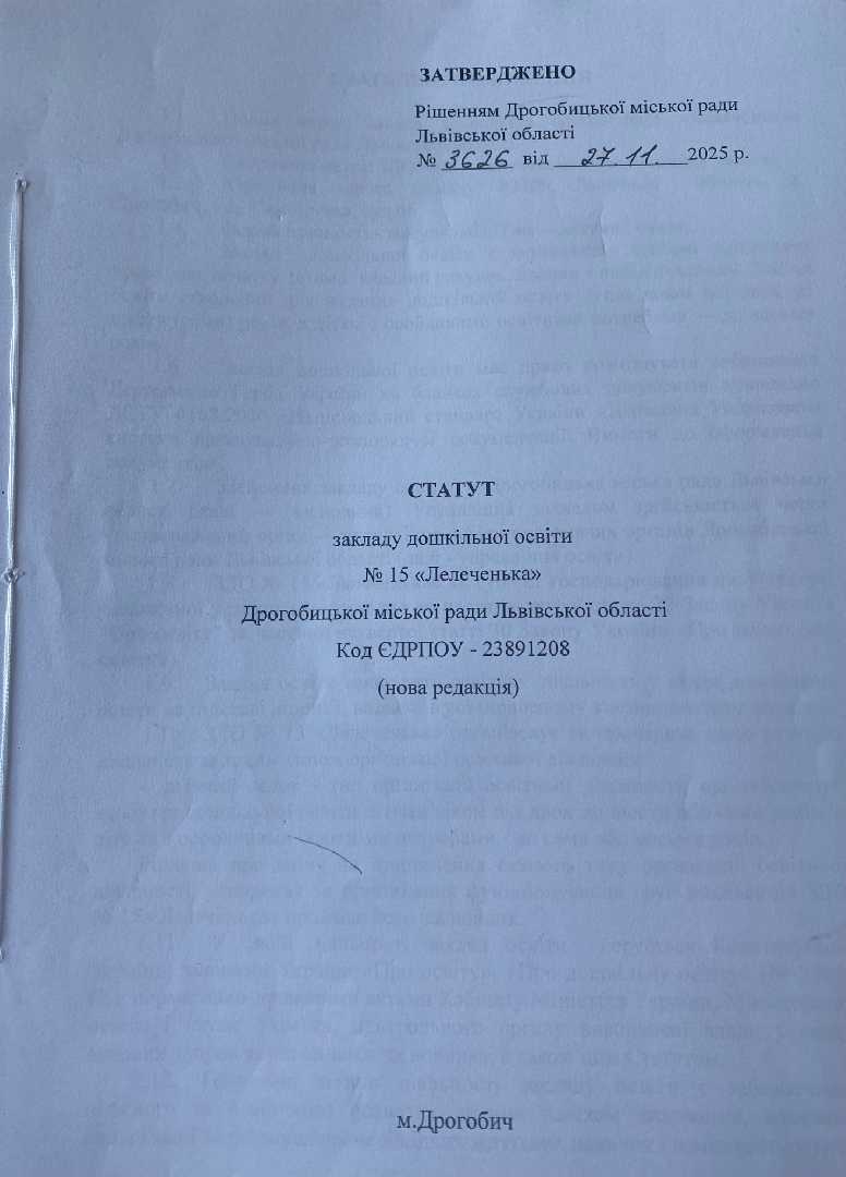 Статут закладу дошкільної освіти №15 "Лелеченька" ДМР