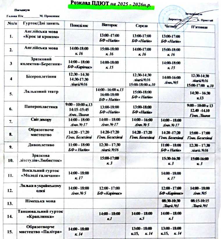 гуртків за інтересами на 2025-26 н.р.